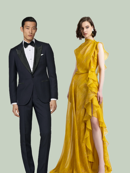 For women: Floor length evening gown, mid-length dress or jumpsuit. Bold and bright gowns are encouraged.